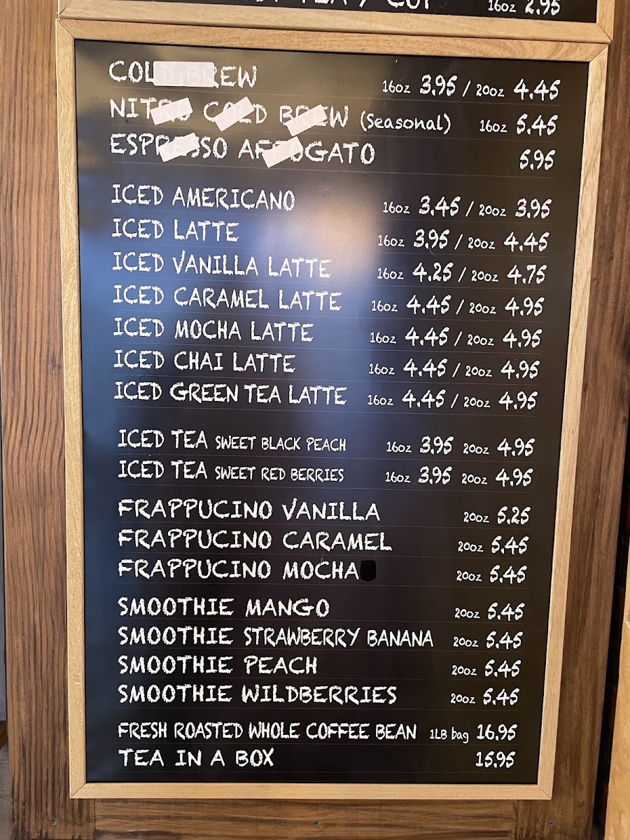 Other Beverages include hot chocolate and additional premium hot teas. The menu supports fast, casual dining with options that work well for quick orders or relaxed breaks throughout the day.